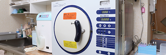 「安心して通える歯科医院」であるために、衛生環境に配慮して感染予防を徹底することは欠かせません。治療が終わる度に使用した器具をすべて洗浄、滅菌しています。滅菌処理が終わった後は真空パックをして保存し、次の治療の直前に開封しています。